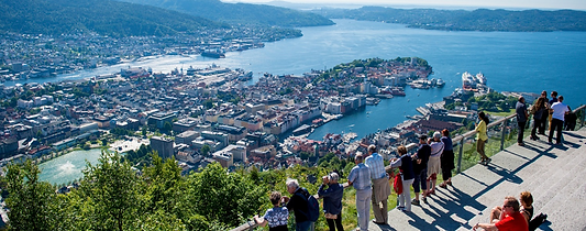 From here the journey continues with a bus trip through the valleys, with its charming villages and scenic nature landscape. From May-September the bus travels down the steep hairpin bends of Stalheimskleiva. The bus will arrive in Voss, where you continue the tour by train on the Bergen Railway to Bergen. Perhaps cap the day by riding up the funicular to the top of 2,000-foot-tall "Mount" Fløyen for city and fjord views.